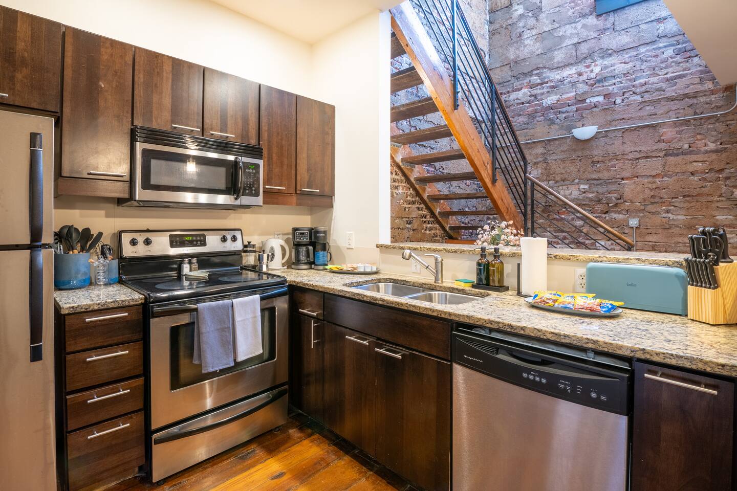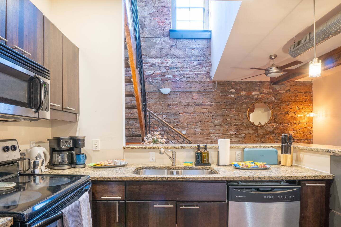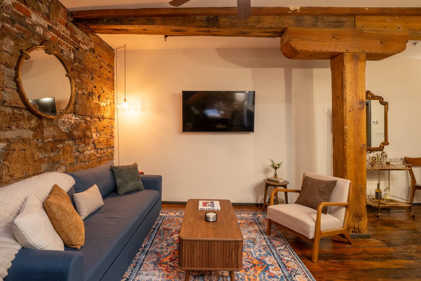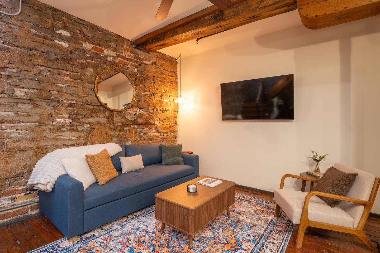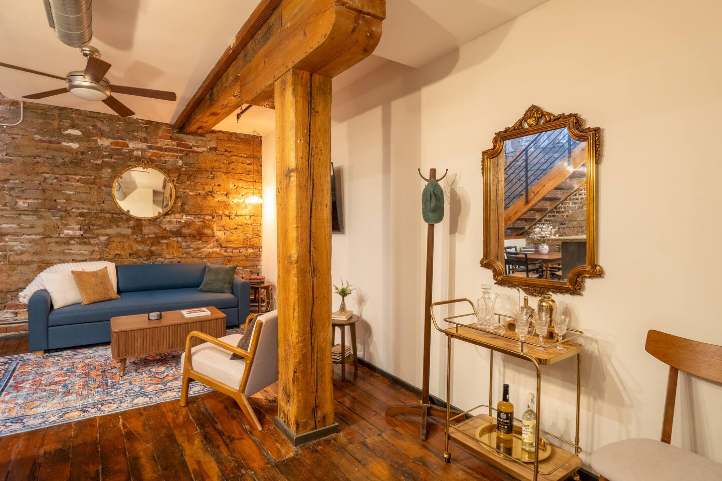 Experience modern comfort in this historical loft in the heart of Shockoe Bottom. You will find yourself just steps from the Canal Walk, the Virginia Capital Trail, local breweries, great dining, downtown attractions, Main Street Station, and VCU’s MCV Hospital. With exposed brick, high ceilings, and thoughtful touches, this space is perfect for business travelers, couples, or small groups looking to explore Richmond in style.