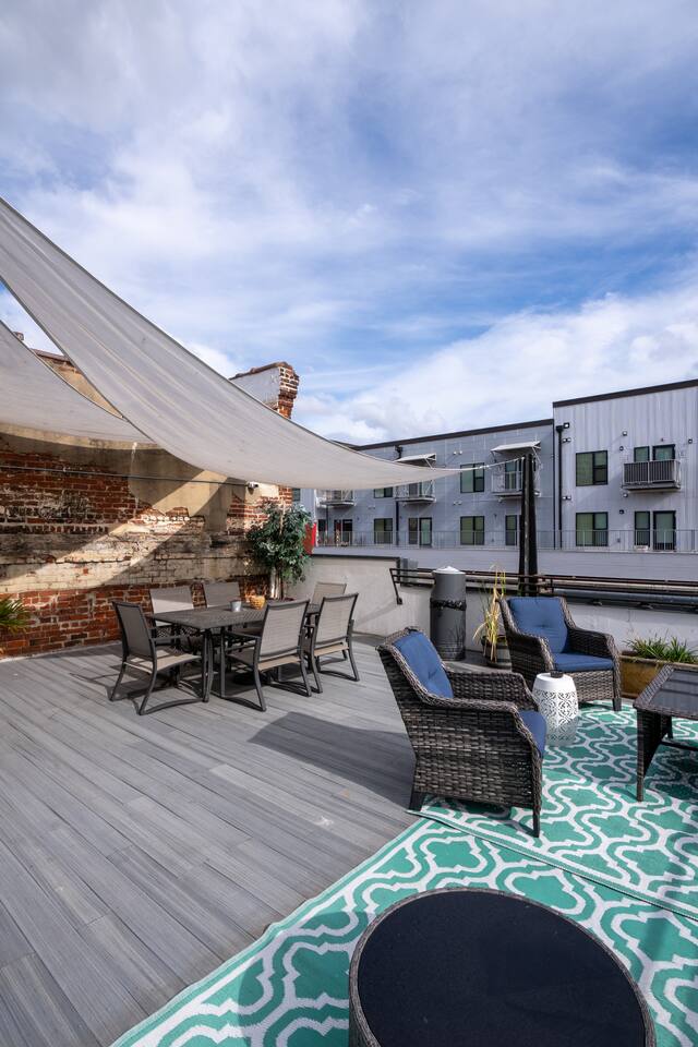 🎉 Welcome to Urban Comfort in Shockoe Bottom This cozy 2-bedroom, 2-bath apartment offers modern simplicity and historic character in one of Richmond’s most walkable neighborhoods. Managed by highly rated hosts and located on the second floor of this apartment building, you’re just steps from the Virginia Capital Trail, VCU’s MCV campus, the Canal Walk, and countless restaurants, cafes, and breweries. Whether you’re in town for work, a weekend escape, or to explore RVA, this well-equipped space offers everything you need for a comfortable stay. 🛋 Living Room – Relax & Recharge ✔️ Spacious main living area with an Article sofa that converts to a queen bed ✔️ Smart TV for streaming your favorite shows ✔️ Fresh linens, pillows, and a cozy setup for additional sleeping space 🍽 Kitchen & Dining – Fully Equipped ✔️ Modern appliances, including a full-size fridge, oven, microwave, and dishwasher ✔️ Stocked with cookware, utensils, dishes, and basic spices ✔️ Dining table seats 4 for shared meals or remote work 🛏 Bedrooms – Clean & Comfortable ✔️ Two private bedrooms, each with a queen-size bed ✔️ Closet in each room for storage and luggage ✔️ Quality bedding and pillows for a restful night’s sleep 🛁 Bathrooms – Practical & Well-Stocked ✔️ Full bathroom downstairs with tile walk-in shower ✔️ Full bathroom upstairs with tub/shower combo ✔️ Complimentary shampoo, conditioner & body wash ✔️ Fresh towels provided 🚪 Entry & Parking – Easy & Secure ✔️ Keyless entry for both the building and apartment ✔️ 1 off-street parking space in a nearby lot (200 ft away) ✔️ Additional street parking and paid lots nearby 🌇 Shared Rooftop Access ✔️ Residents-only rooftop patio available for guest use ✔️ Perfect for morning coffee or an evening wind-down 📍 Heart of Shockoe Bottom ✔️ Steps to the Capital Trail, Canal Walk, and Main Street Station ✔️ Walk to VCU’s MCV hospital, Ironclad Coffee Roasters, The Poe Museum, and so much more ✔️ Central to downtown, with quick access to I-95 and I-64